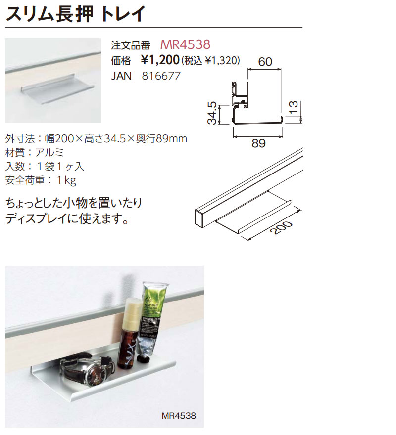空いてる壁を収納に レールオプション スリム長押 トレイ MR4538(1袋1ヶ入)