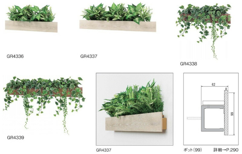 空間をデザインする新しいグリーンスタイル ウォールポット GR4336~GR4339 注文品番:GR4336
