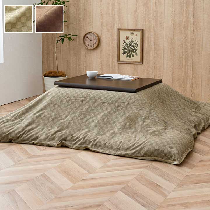 | 生地にインド綿を使用したこたつカバーです。シンプルモダンをテーマにデザインしておりますので、少し大人で素材感のあるお部屋のイメージにぴったりです。インド産の綿生地を使用しております。また、綿はポリエステルに比べ、冬場気になる静電気も起こりにくく、繊維の中でも特に肌触りがよいのが特徴です。 |