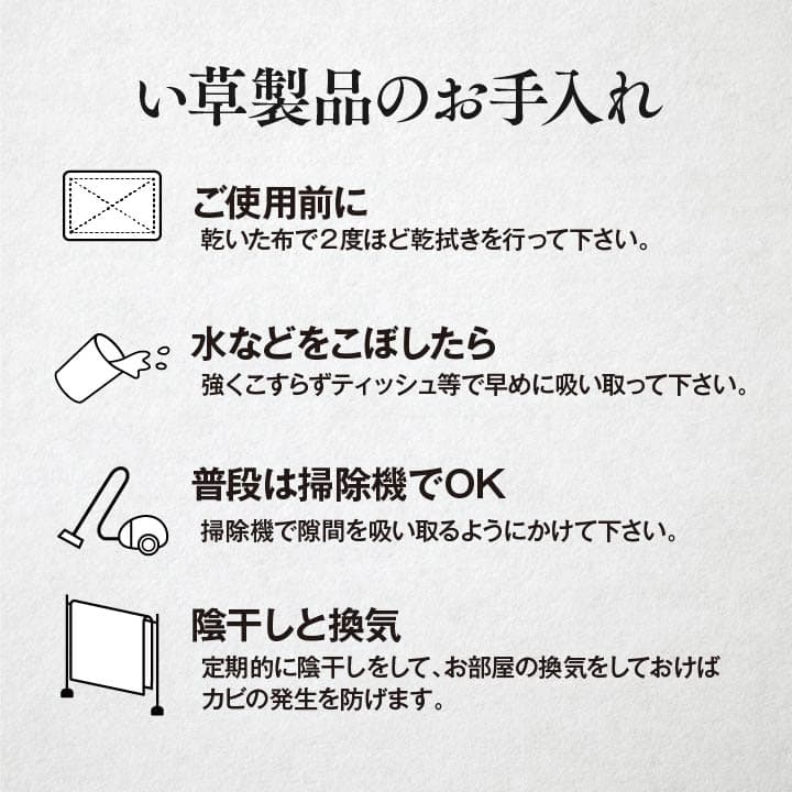 | 表地=い草 裏地=ポリエステル100%(不織布) ヘリ=ポリエステル100% |
