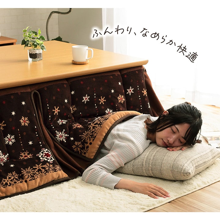 | 向かい合わせでゆったりすわってくつろげる、大判サイズの省スペースのこたつ布団。可愛らしいノルディック柄のコンパクト省スペースこたつ布団です。サンゴマイヤー生地で、冬にぴったりなあったか商品。裏面タレ部もフリース素材であたたかさにこだわりました。中綿のズレを防ぐキルト加工を施しています。※ こたつ台、こたつ敷き布団は別売りです。※ 掲載写真は表記サイズと異なる場合がございます。※ ふとんをやぐらの中に押し込んだり、座イスやイス全体をこたつの中に入れたまま使用しないでください。ふとんがヒーターに当たらないようにご使用ください。(火災の原因になります)ご使用により、ふとんが焦げた場合につきましては、返品・交換を承ることができませんので、あらかじめご了承ください。 |