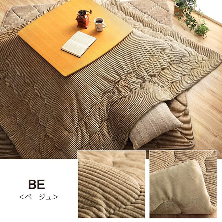 | コーデュロイ調のおしゃれなこたつ布団。中綿には抗菌防臭機能付きの綿を使用しています。表地はコーデュロイ調の凹凸ストライプとなっています。裏地には肌触りなめらかなフランネル生地を使用しています。部分暖房のこたつは電気代もおトクです。※掲載写真は表記サイズと異なる場合がございます。※ふとんをやぐらの中に押し込んだり、座イスやイス全体をこたつの中に入れたまま使用しないでください。ふとんがヒーターに当たらないようにご使用ください。(火災の原因になります)ご使用により、ふとんが焦げた場合につきましては、返品・交換を承ることができませんので、あらかじめご了承ください。※画面上のカラーはご使用ブラウザやモニターの設定により、実物とは若干異なる場合がございます。あらかじめご了承の上、ご注文をお願いいたします。 |