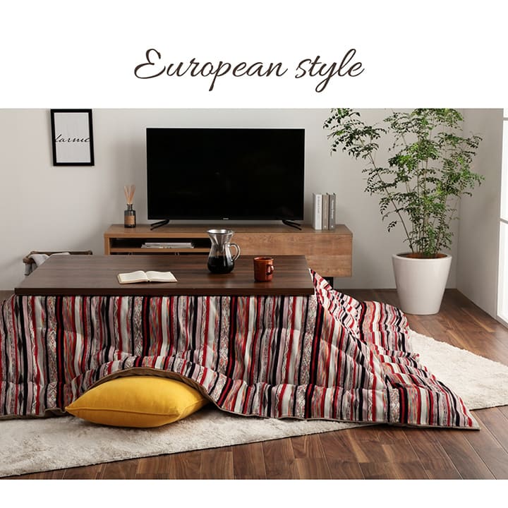 | 多彩な色糸を使ってデザインの異なる柄と幅で作り上げたストライプ調のこたつ布団。ジャガード織で織った細かいデザインとしっかりとしたトルコ製の生地が高級感を演出してくれます。裏地はあったかフランネル生地でなめらかな肌触り。中綿には弾力性と保温性に優れた東レマッシュロン綿をたっぷり使用。表地のデザインとふっくらした見た目が合わさって高級感漂う一品です。ふっくらとしたボリューム感は国内で綿入加工をしている商品だからできる仕上がり。熱が逃げにくいフィットキルト加工であたたかさを維持してくれます。3サイズ展開※モール糸を使用しているため、粘着クリーナーでお掃除されますと繊維が抜けることがあります。ご使用はお控えください。※こたつ台、敷布団は別売りです。※ふとんをやぐらの中に押し込んだり、座イスやイス全体をこたつの中に入れたまま使用しないでください。ふとんがヒーターに当たらないようにご使用ください。(火災の原因になります)ご使用により、ふとんが焦げた場合につきましては、返品・交換を承ることができませんので、あらかじめご了承ください。※掲載写真は表記サイズと異なる場合がございます。※画面上のカラーはご使用ブラウザやモニターの設定により、実物とは若干異なる場合がございます。あらかじめご了承の上、ご注文をお願いいたします。 |