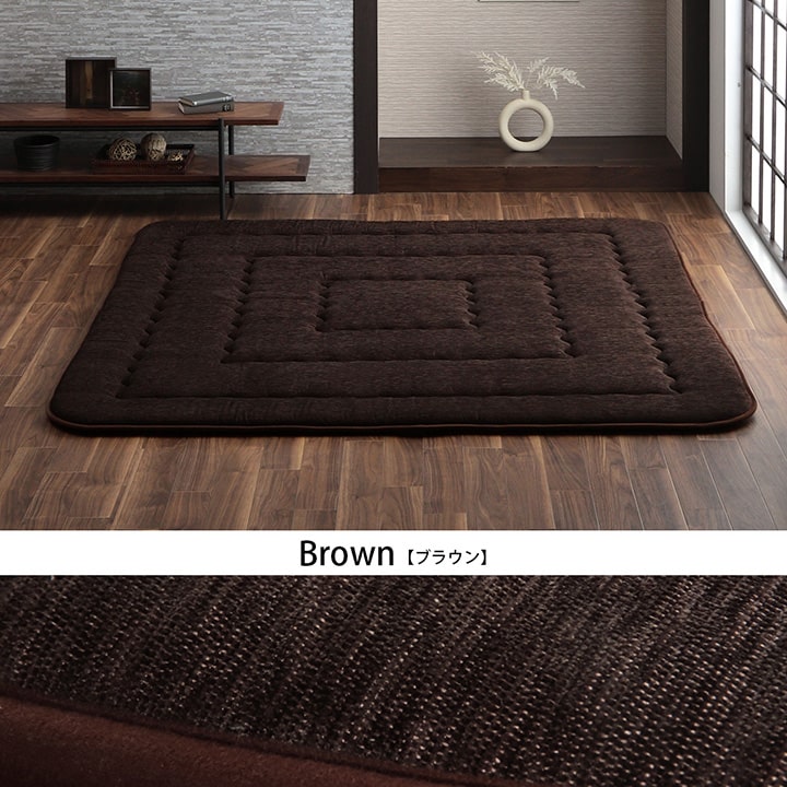 | 厚さ約40mmのボリュームタイプのカーペット。中材にはクッション性にこだわった国産固綿を使用。十分な弾力性があるので底つき感もなくフローリングでのご使用にも最適です。遮音等級はΔLL(I)-9 を取得しており、床下への騒音も軽減します。表地には撥水加工を施しているため、飲み物などをこぼしてもさっと拭き取れて安心です。こたつと併用するとこたつの熱を床下へ逃しにくくなるので省エネ効果もあります。遊び毛がでにくいシェニール糸を使用しているため、お手入れもしやすい。※ 掲載写真は表記サイズと異なる場合がございます。 |