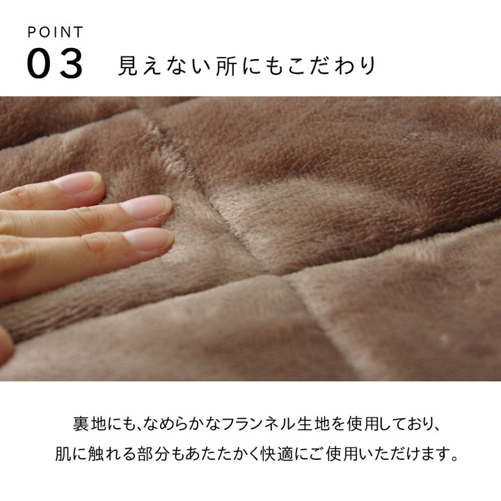 | 表地ポリエステル100%【フランネル先染め ジャガード】 裏地=ポリエステル100%【フランネル】 中材=ポリエステル100% |