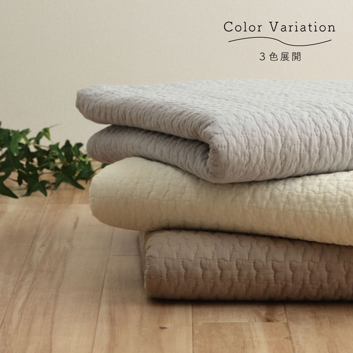 | 心がほっと和らぐようなナチュラルな色合いと、モコモコとした凹凸のあるクラウド柄のキルティング生地のマルチカバーです。生地には、天然素材の綿を100%使用し、肌に優しいマルチカバーです。水洗い加工を施しているため、ふんわりやわらかい生地になり、吸湿性も抜群です。両面使えるリバーシブルタイプです。汚れても洗濯機で丸洗いができるため衛生的です。 洗濯しても縮みにくいのも特徴です。ベッドスプレッドやこたつカバー、ソファカバー、ホットカーペットカバーなど、一年中活躍します。 |