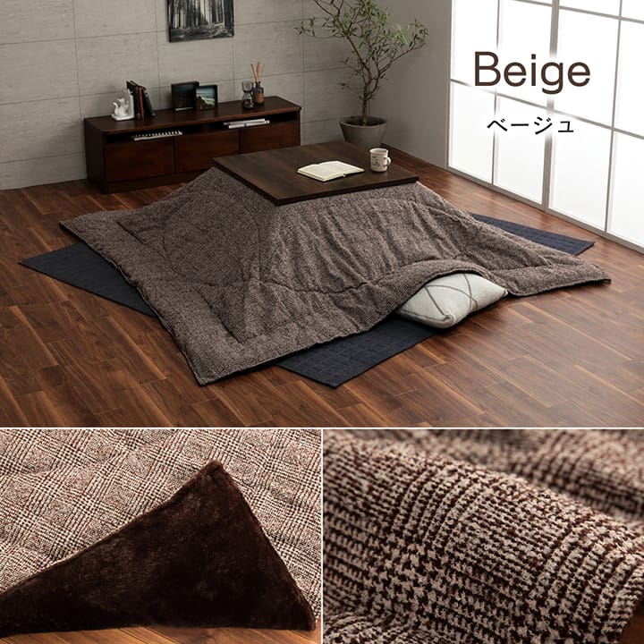 | シンプルなデザインのこたつ布団です。表地にはツイード調の生地を使用しているため落ち着いた雰囲気のお部屋にぴったりです。裏地にはソフトな肌感触のフランネル生地を使用しています。薄手なのでかさばらず、コンパクトに収納できます。部分暖房のコタツは電気代もおトクです。 |