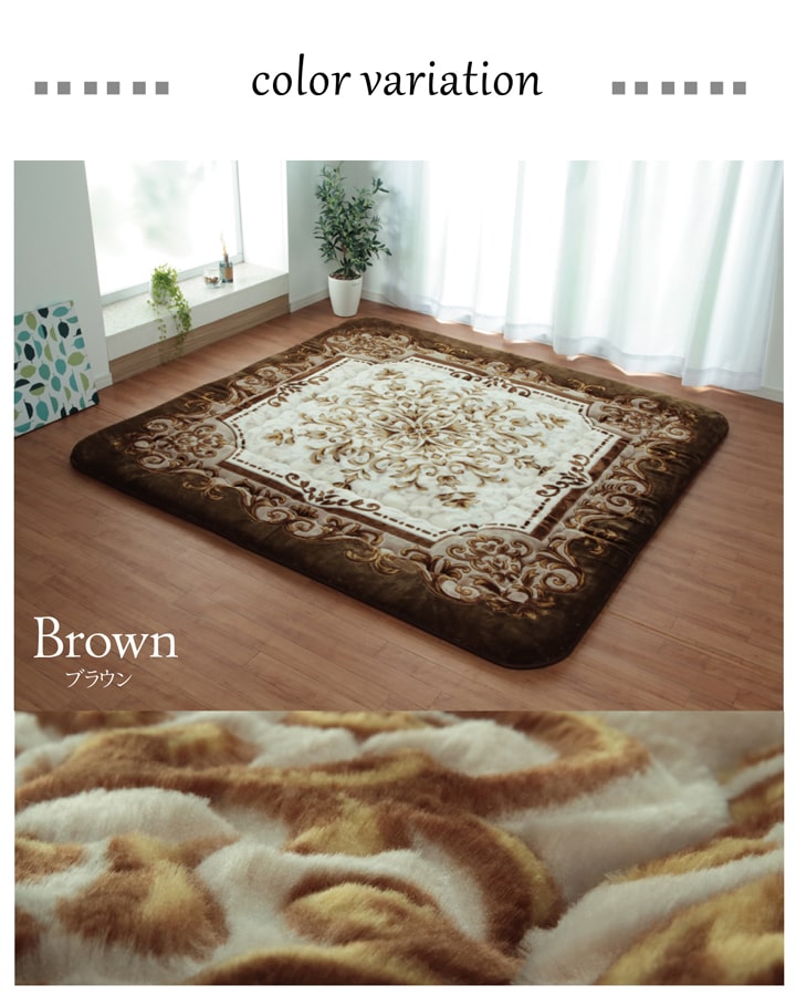 | カービングを施した、立体感のある商品です。洋室にも和室にもご使用いただけます。中材にはクッション性にこだわった国産の固綿40mmを使用しています。十分な弾力性があるのでフローリングでのご使用にも最適です。 |